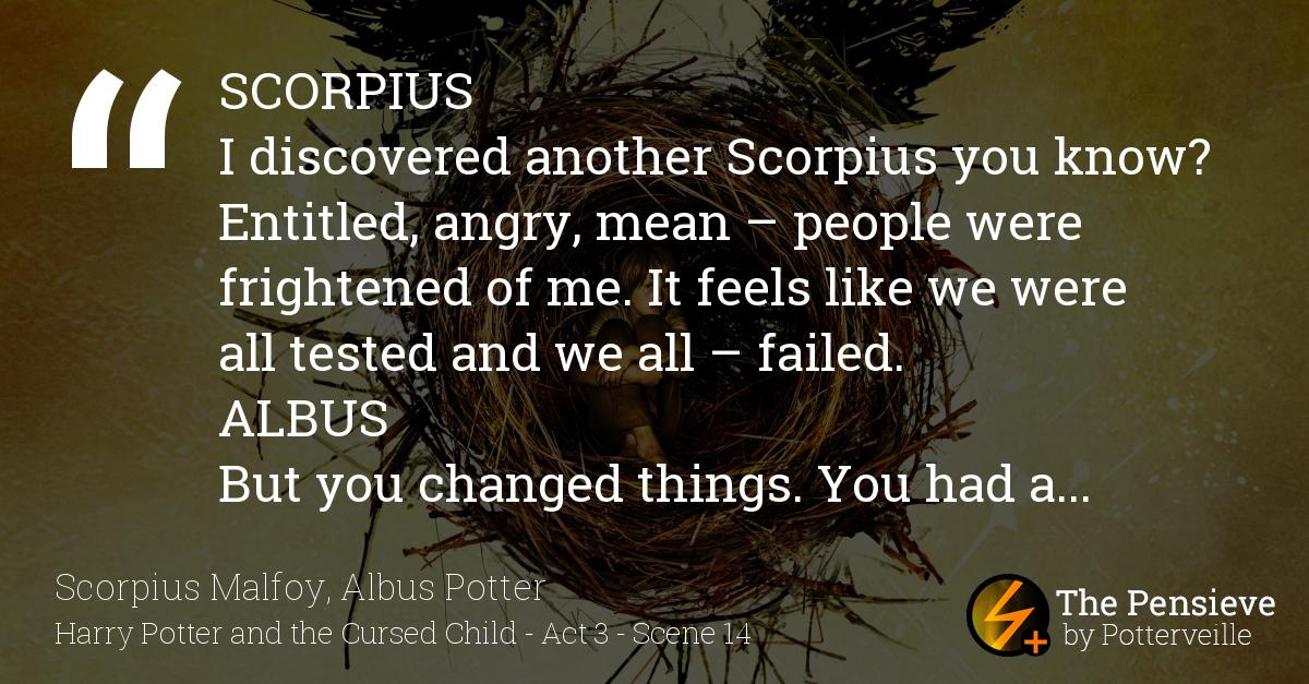 SCORPIUS I discovered another Scorpius you know? Entitled, angry, mean – people were frightened of me. It feels like we were all tested and we all – failed.