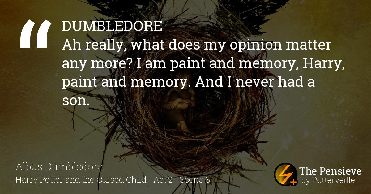 Ah really, what does my opinion matter any more? I am paint and memory, Harry, paint and memory. And I never had a son.
